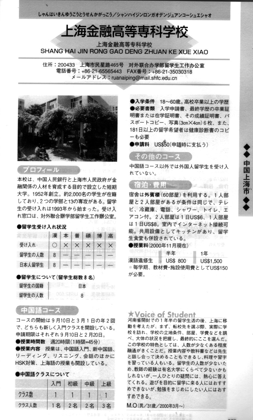 上海金融高等専科学校には1年くらい在籍した
