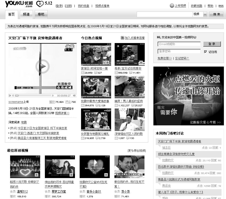 娯楽系の動画サイト優酷(YOUKU)なども