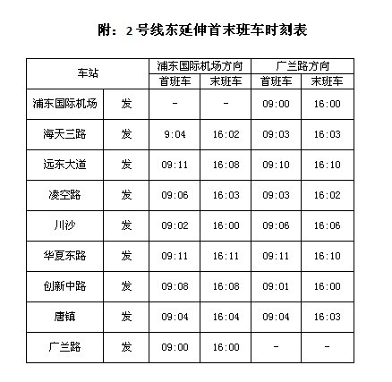 自 4月8日起,上海轨道交通2号线东延伸二期将延伸至浦东国际机场,届时,2号线车站数将达到30座,线路全长?至60公里,成为上海轨道交通网络中惟一一 条连接浦东、虹桥两大机场的线路(虹桥机场2号线航站楼站—浦东国际机场站)。至此,上海轨道交通全路网运营总里程已达到380公里,共设238座车站。 由于新开通区段的车辆、信号等设备系统仍在调试,试运营初期暂不覆盖早晚高峰。 据了解,虹桥机场2号线航站楼站—浦东国际机场站全程约58公里,乘客需花费近2个小时,相比现在的两大机场直达公交班车最快1小时的车程,轨道交通在时间上并不占优,只是8元的地铁票价较30元的公交巴士便宜不少。