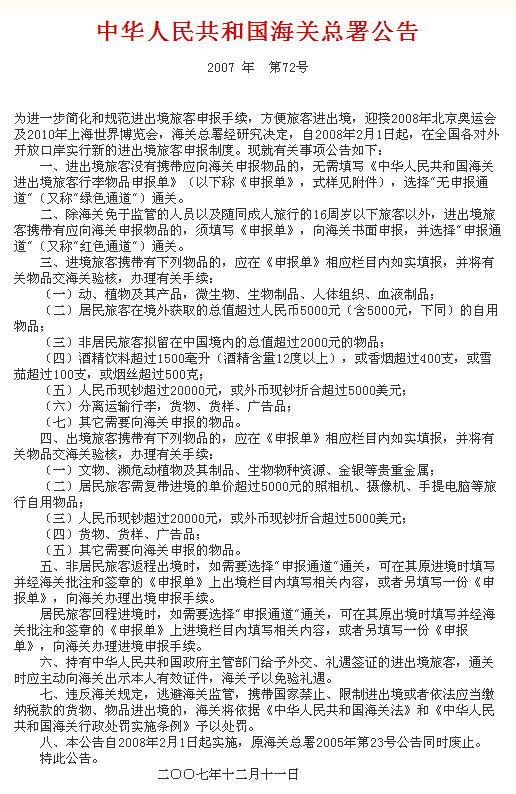 中国への携帯持込,及び郵便での輸入を定めた
